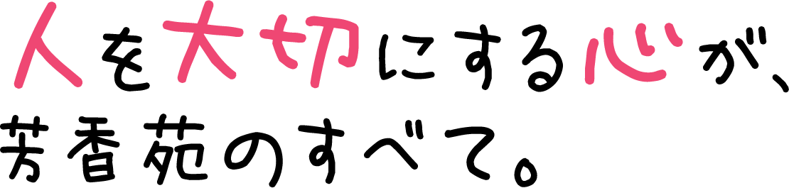 芳香苑では、ご利用者様だけでなく、一緒に働く仲間にも「優しさ」と「思いやり」を大切にできる介護職員を募集しています。